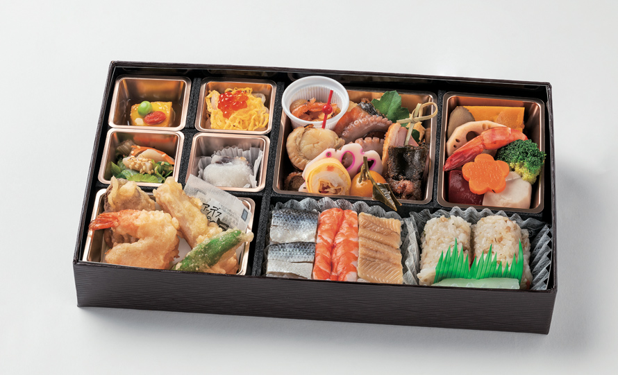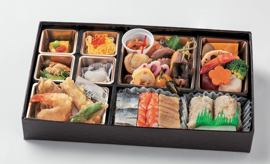 押し寿司や炊き合わせなど、割烹料理を33品目盛り込んだ豪華プレミアム弁当です。