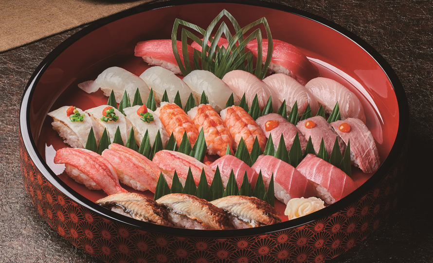 | 献立 | マグロ・鯛・鰤・真ふぐ炙り・海老・ローストビーフ・ズワイガニ・中トロ・鰻 |
