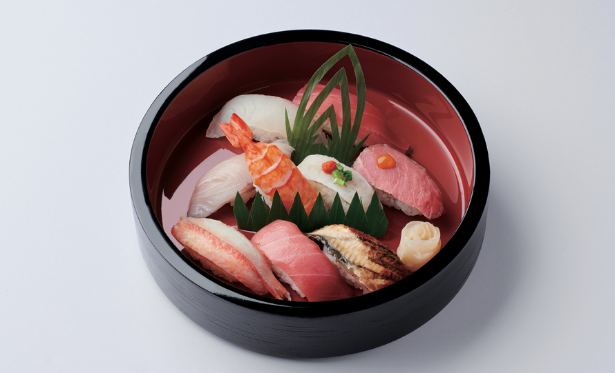 | 献立 | マグロ・鯛・鰤・真ふぐ炙り・海老・ローストビーフ・ズワイガニ・中トロ・鰻 |
