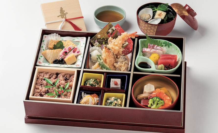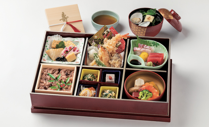 お赤飯や蛤のお吸い物がセットになった祝い膳。ご自宅でのお祝いにご利用ください。